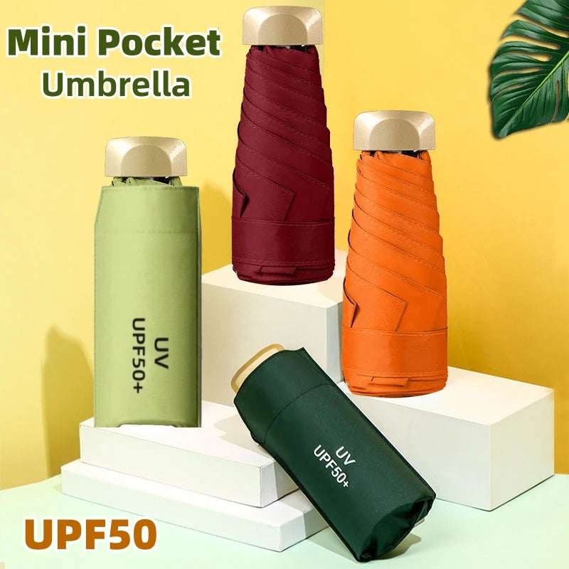 Mini Pocket Umbrella Portable Small Travel Rain Parasol Vinyl Folding Sun Shade Rainproof Umbrella UPF50+ Capsule Umbrellas